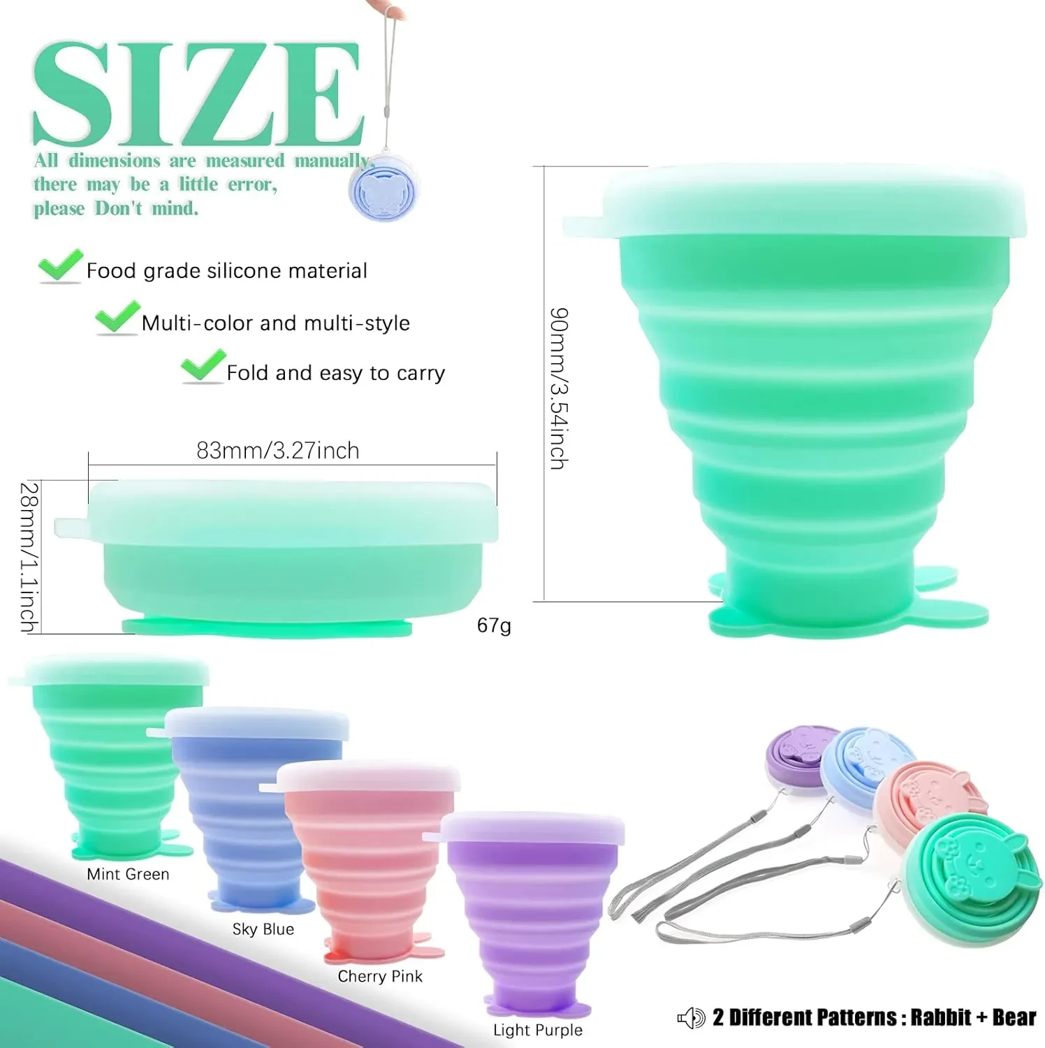 এই কাপগুলোর সবচেয়ে বড় সুবিধা হলো এদের ভাঁজ করার ক্ষমতা (collapsible feature)। উচ্চ-মানের সিলিকন দিয়ে তৈরি হওয়ার কারণে, এগুলিকে খুব সহজে ভাঁজ করে পকেট বা ব্যাগের ছোট্ট কোণে রেখে দেওয়া যায়। এই বৈশিষ্ট্য তাদের অত্যন্ত পোর্টেবল করে তোলে। যারা প্রায়ই ভ্রমণ করেন, ক্যাম্পিং বা হাইকিংয়ে যান, অথবা যাদের কর্মস্থলে বা পড়াশোনার জায়গায় নিজের কাপ নিয়ে যেতে হয়, তাদের জন্য এগুলো একটি অপরিহার্য জিনিস। যখন আপনার কাপের প্রয়োজন হবে না, তখন এটি ভাঁজ করে গুছিয়ে রাখা যাবে, যা আপনার ব্যাগ বা ডেস্কে জায়গা বাঁচাবে।